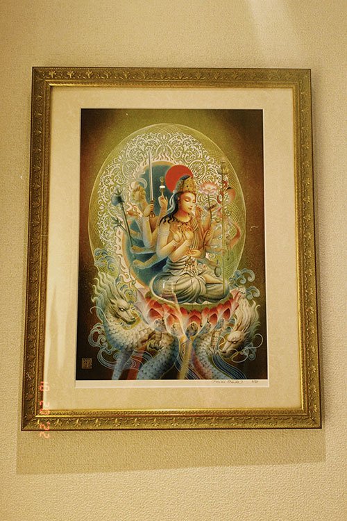 家の中に神仏様の絵がたくさん飾ってあります。写真の中は玄関の廊下に飾ってある准胝観音菩薩の絵です。