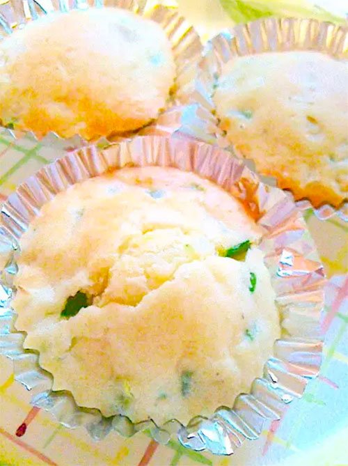 米粉と豆乳で作ったマフィン生地に玉ねぎとピーマンを加え、