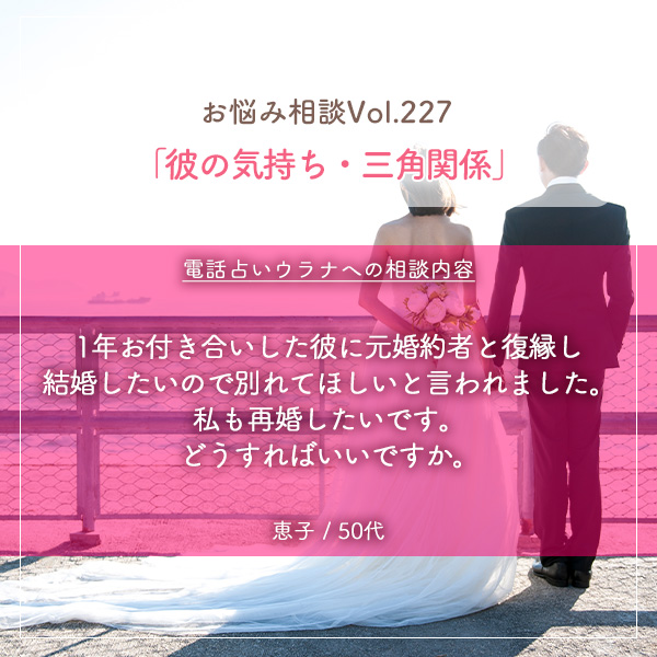 ですが、お相手様ご自身もいつまでも過去を引きずっているのではなく、乗り越えなければいけない!という気持ちが徐々に出てきていることがわかります。