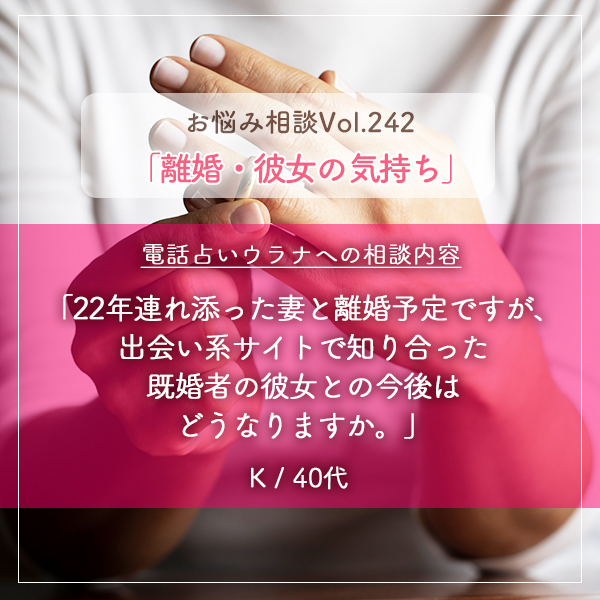 今後は、人生のパートナーとして、元奥様の良きご相談相手として、時にゆうすけ様が導いて差し上げるご関係というのが、今まさに、元奥様が望んでいらっしゃるご関係なのではないでしょうか。